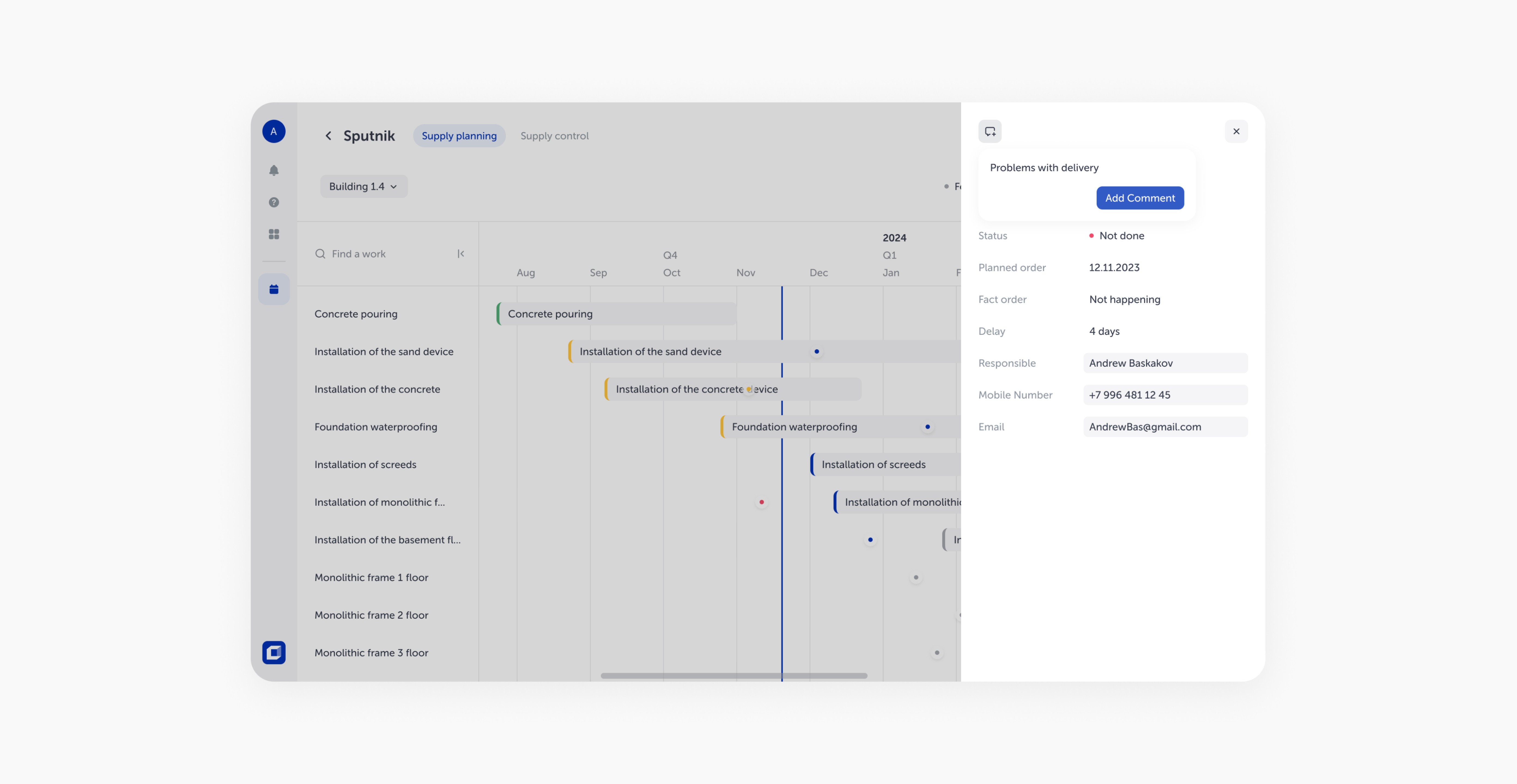 Now, users can track all pending requisitions within the construction project, get information about requisition creation timelines, and obtain contact information for those responsible for the process. This significantly reduces the amount of time employees spend gathering and updating information
