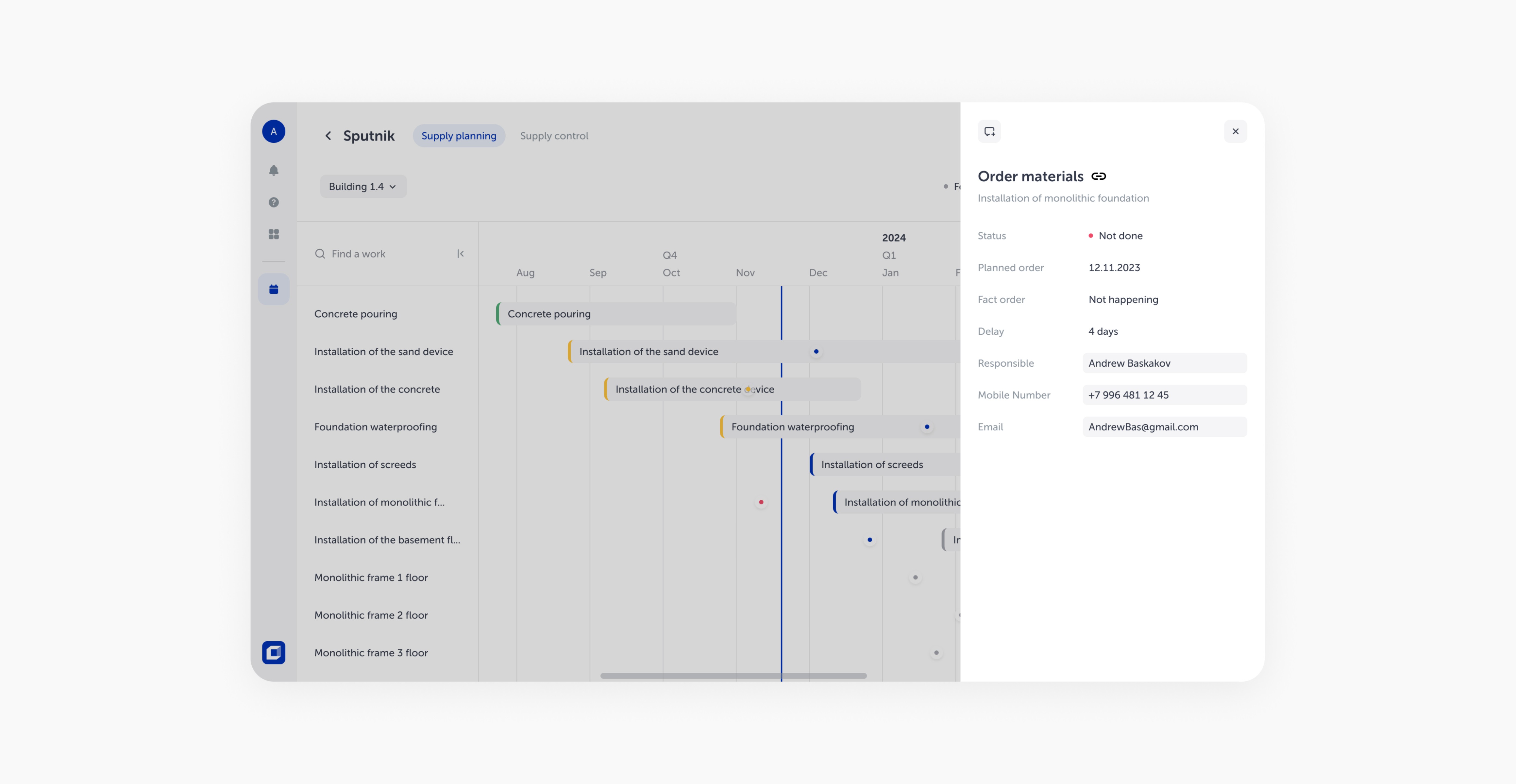 Supply Planning (our MVP version): Contractors initiate the delivery of materials by submitting timed requests